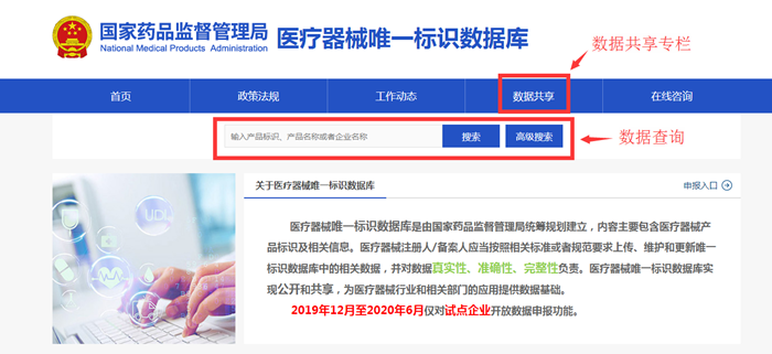 為貫徹落實(shí)黨中央、國(guó)務(wù)院醫(yī)藥衛(wèi)生體制改革和治理高值醫(yī)用耗材改革有關(guān)精神,國(guó)家藥監(jiān)局會(huì)同國(guó)家衛(wèi)生健康委聯(lián)合開展了醫(yī)療器械唯一標(biāo)識(shí)系統(tǒng)試點(diǎn)工作。按照工作部署,2019年12月10日唯一標(biāo)識(shí)數(shù)據(jù)庫(kù)正式上線,2020年3月31日開放數(shù)據(jù)庫(kù)共享功能,以查詢、下載、接口對(duì)接等三種方式,供公眾、醫(yī)療器械生產(chǎn)經(jīng)營(yíng)企業(yè)和醫(yī)療機(jī)構(gòu)等各方查詢使用。